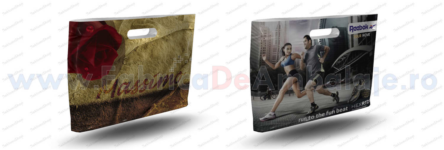 Imprimarea. Personalizarea la 3 culori este GRATUITA. Se pot imprima 1-6 culori liniare (curbe, linii, simboluri, sigle, fonte, etc) pe ambele fete ale sacosei, sau se poate realiza in policromie la 4-8 culori complexe si speciale.